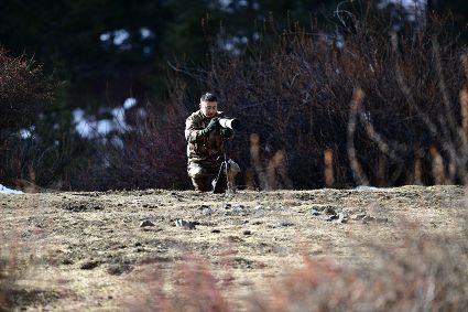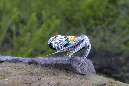 4月16日,筆者在康定市雅拉鄉(xiāng)境內,再次拍攝到國家二級保護動物白腹錦雞求偶的清晰視頻。一只色彩斑斕的雄鳥,拖著黑白相間的云狀斑紋尾羽,圍著雌鳥跳起了“圓舞曲”。整個求偶過程有十多分鐘。每年三至五月是白腹錦雞求偶期。