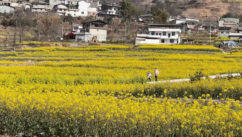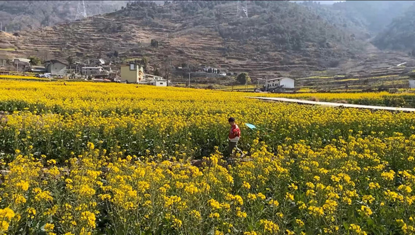 在距離瀘定縣城20多公里的德威鎮(zhèn)田壩村,成片的油菜花迎著春陽連綿盛開,目之所及盡是芳菲,猶如彩色地毯披覆鄉(xiāng)間,勾勒出一幅產(chǎn)業(yè)興旺、生態(tài)宜居、鄉(xiāng)村振興的秀美畫卷,成為瀘定鄉(xiāng)村靚麗的風景線。