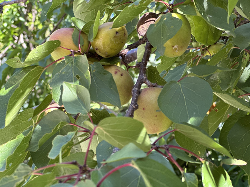 彩色鋪裝的通村路兩邊,成片的苞谷林正在背紅纓,風(fēng)中響著緊密結(jié)實(shí)的聲音。各種果木枝繁葉茂,結(jié)滿了寶石般紅紅綠綠的果子。一排柴垛上方,伸出很大一片橙色的小果子,沒有葉子,我們像賞花一樣欣喜于它的紅艷。嘉絨姑娘悄默地走在我們身邊,她的手里擺弄著一片草葉,安靜而美好,是感到這一路上的莊稼果木已經(jīng)足夠繁盛。