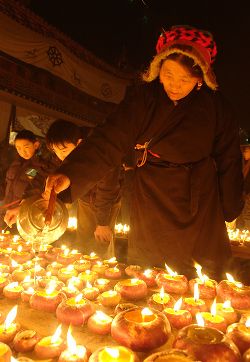 傳說藏歷十月二十五日,是藏傳佛教格魯巴(俗稱黃教)創(chuàng)始人宗喀巴大師圓寂成佛的日子。為了紀(jì)念這位杰出的宗教領(lǐng)袖,藏區(qū)各黃教寺廟和信徒于藏歷十月二十五日,舉行誦經(jīng)、磕頭,燈供儀式等隆重的祭祀活動(dòng),祭祀宗喀巴大師在天之靈和祈愿大師賜與善良的人們以吉祥幸福。