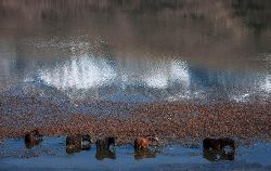 雪山倒映在卡薩湖中(11月9日攝)??ㄋ_湖位于四川省甘孜藏族自治州爐霍縣西60公里處,海拔3510米、面積1.92平方公里,屬于高原淡水湖泊,是川藏北線最大的水鳥棲息地。冬季的卡薩湖,湖水如鏡,倒映著群山白云,恬靜美麗。新華社記者 江宏景 攝