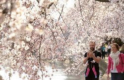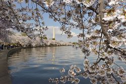 2014年華盛頓櫻花節(jié)于3月20日至4月13日舉行。因美國(guó)東部地區(qū)今年遭遇“冷冬”和“倒春寒”,櫻花延遲綻放。隨著近日氣溫上升,潮汐湖畔的數(shù)千株櫻花終于盛開。