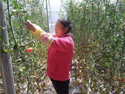 本網訊(馬建華 文/圖)陽春三月,爐霍大地仍然一派蕭條景象。然而在爐霍縣斯木鄉(xiāng)吉絨村的蔬菜大棚里,卻綠意盎然。紅彤彤的樹番茄、碩大的茄子、長勢喜人的青椒、紅艷艷的花卉,大棚里溫暖的春色吸引了縣城市民和游客前來觀光,購買新鮮的蔬菜。比縣城菜市場價格便宜一半的蔬菜,讓市民爭相前來購買。吉絨村村民將土地流轉給蔬菜種植公司,收取土地流轉費,在蔬菜大棚里打工,每天還有100元錢的收入,而且學到了先進的蔬菜種植技術,為今后發(fā)展蔬菜大棚、種植反季節(jié)蔬菜、增加經濟收入打下了堅實基礎。爐霍縣在發(fā)展高原特色現(xiàn)代觀光農業(yè)方面邁出了可喜步伐。