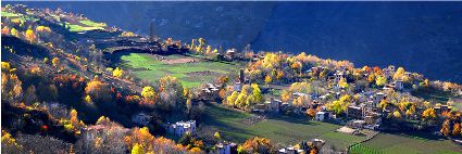丹巴的秋似乎來得更晚一些,當羌塘高原上的雪花從彤云密布的天空中飄灑下來,雅礱江上游滴水已成冰的時候,那秋才帶著陣陣涼意,伴隨著飄飄蕩蕩的白云,跨過雪域高原,翻過崇山峻嶺,載著五顏六色的夢想,悄悄的眷顧上這塊還郁郁蔥蔥的峽谷。就這樣,秋在不經(jīng)意間劃過峽谷兩岸,用自己特有的方式,渲染了所有的景色,漸漸瘦弱了山的肌膚。