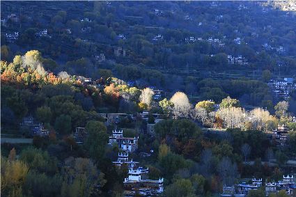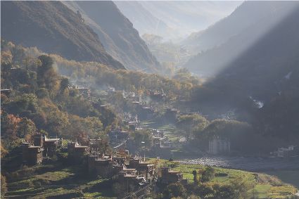 落日將最后一道霞光在山尖劃過,暗夜便裹挾這寒意搖動起山林中的樹木。風(fēng)漸緊,那已經(jīng)稀稀落落的樹葉隨著風(fēng)的韻律,跳起歡快的鍋莊,仿佛在告別這一年的繁華。突如其來的大雪,給丹巴的二月涂上白色的記號。從山尖到院前的樹上,一溜兒雪白,正應(yīng)了“忽如一夜春風(fēng)來,千樹萬樹梨花開”的情景,讓人忍不住伸出手指看看這花是真是假。大雪過后,陽光如約而至撒滿藏寨,金色陽光和蒸騰的白霧縈繞在雪白的山頭,與山下的古碉藏寨,河畔的清流巧妙地構(gòu)成一幅絕美畫卷,讓人仿佛身處仙境。吸足了養(yǎng)分的柳樹終于抽出綠芽送來春天的信號,那柳條兒在細(xì)風(fēng)吹拂下宛如少女對鏡梳妝,在陽光下顯得無比溫柔,讓人不禁想貼近它們,感受這溫暖又靜謐的溫柔。
