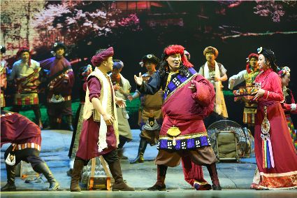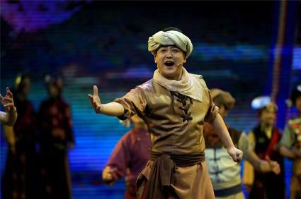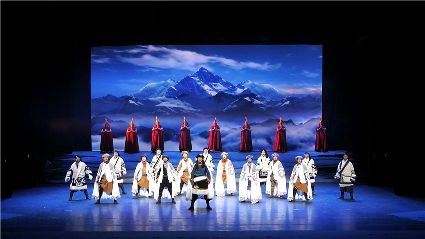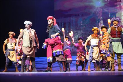 初生的音樂劇《康定情歌》是個(gè)聽話謙遜的孩童,專業(yè)人士的諄諄教誨一定會(huì)牢記在心;他也是個(gè)具有思鄉(xiāng)情結(jié)的游子,自己的一顰一笑都流露出濃郁的民族風(fēng)采;同時(shí)他也是個(gè)頑強(qiáng)拼搏的逐夢(mèng)少年,即便汗水和淚水匯成一道道溝壑,依然挺胸不低頭,只為在明天,成為更好的自己。 (圖片由州歌舞團(tuán)提供)