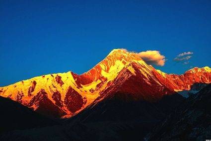 貢嘎山有“蜀山之王”的美稱,在這里,你可以看見日照金山的美麗,也少不了浩瀚星空的斗轉(zhuǎn)星移讓人迷醉。當(dāng)然,日出時它的云海涌動搭配著萬丈霞光的美麗,也是讓人美不勝收。