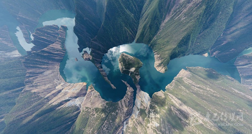 天龍湖是一個(gè)向上的世界,這世界被山水抬舉。記者從最佳視角——位于峽谷核心區(qū)普巴絨鄉(xiāng)比貢寺所在的山脊俯瞰,“九曲回腸”的一灣灣碧水在瘦削相對(duì)的青山之間,串連似珠玉,蘊(yùn)翠含黛、峻峭生姿。