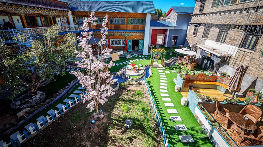 “我們的酒店主打‘民宿牌’。這座院子是稻城唯一一家四合院,始建于1961年,有著60多年歷史了,房子本身就是一個文化符號。”石雅琴告訴記者,酒店有32間房,基礎(chǔ)設(shè)施齊備,每間房間都有供氧設(shè)備、地暖、溫泉。但最讓石雅琴驕傲的是整個酒店酒店是結(jié)合稻城亞丁自然優(yōu)勢及獨(dú)特的藏文化而改造的特色文化鄉(xiāng)居,體現(xiàn)出濃郁的民宿味。記者看到,一扇精雕細(xì)琢的藏式大門透著濃濃民族味,走進(jìn)院子,小徑通幽,花木繁榮,綠植盎然。回廊通透,步入房間,稻城風(fēng)光躍然于墻,富有民族特色的床品更是讓你一下感受到藏文化的親切融入。