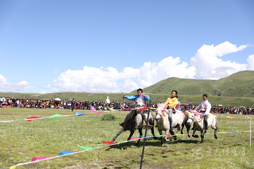 馬尼干戈鎮(zhèn)全境橫貫國道317線,是德格典型的純牧業(yè)鄉(xiāng)鎮(zhèn),轄區(qū)內(nèi)地廣人稀,草場豐富,有著十分豐富的牧俗文化,“西天瑤池”玉隆拉措也坐落于此。每年的7月底8月初舉行的賽馬節(jié),是當(dāng)?shù)刈顬槁≈氐膫鹘y(tǒng)民族節(jié)日之一。在雪域高原上綠草如茵、各類鮮花爭相斗艷的最美時節(jié),牧民們會身著華麗的藏裝,自發(fā)聚集在一片開闊的草場上,搭帳篷、唱歌跳舞,并開展賽馬、賽牦牛、賽跑和馬技表演、趣味游戲等民俗民間活動,增進相互之間的感情,促進鄰里和睦。