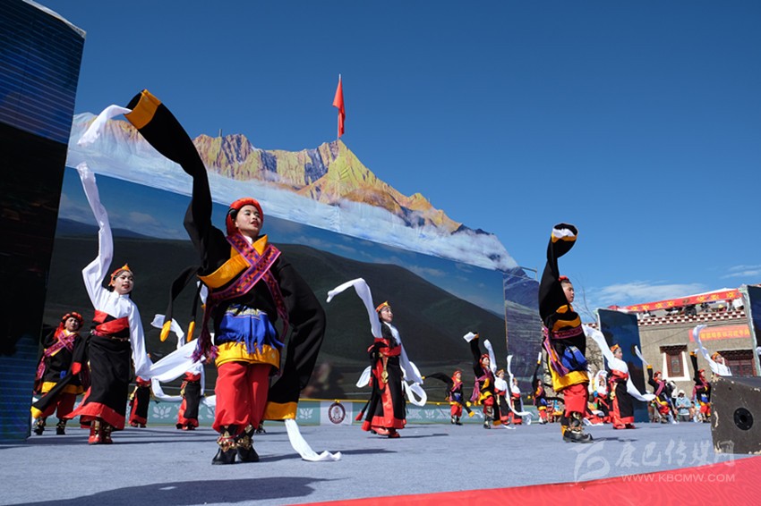 下雄鄉(xiāng)群眾表演的舞蹈《扎西鍋?zhàn)俊窞殚_幕式文藝演出拉開序篇。開幕式分為《包容甘孜·產(chǎn)業(yè)甘孜》《文化甘孜·智慧甘孜》《文明甘孜·綠色甘孜》三個(gè)篇章,來自該縣21個(gè)鄉(xiāng)鎮(zhèn)的千余名農(nóng)牧民群眾,身著盛裝、揮舞長袖、合著歡快的節(jié)拍悠揚(yáng)的旋律,歡聚于此共襄盛舉。