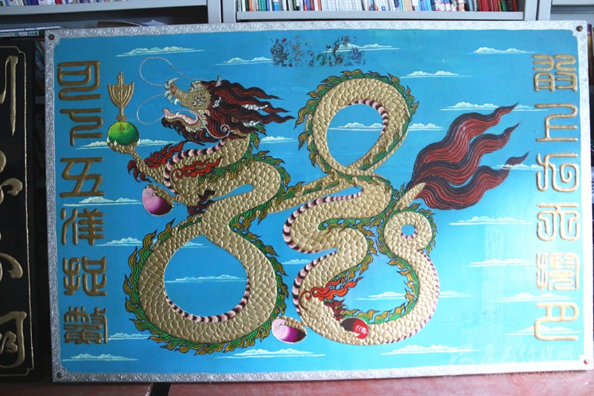 走進(jìn)王長生的工作室,他保存有古董級的電影放映機(jī)、留聲機(jī)、電話、黑白電視機(jī)、照相器材和吉他、二胡、笛子等樂器應(yīng)有盡有,看到這些古老的“裝備”,記者仿佛走進(jìn)了那段塵封的歲月。2008年,王長生創(chuàng)作的雕刻畫《昂首蒼穹》,走進(jìn)成都國際博覽中心,國家文化產(chǎn)業(yè)設(shè)計(jì)院的兩名專家評價說,作品的文化內(nèi)涵和藝術(shù)觀賞性都很高。王長生解釋說,龍是中華民族的圖騰,龍中之龍?jiān)⒁鉃樯暇盘鞌堅(jiān)?,下五洋捉鱉,反映了中華民族的豪氣。
