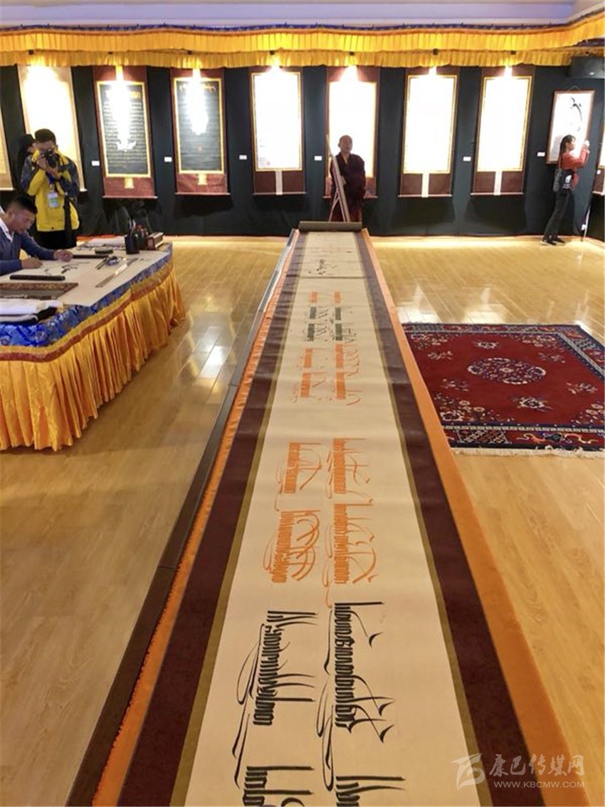 站在“倉央嘉措詩歌藏文書法百米長卷”面前,來自成都的徐賢前感嘆到:“我一直都很喜歡倉央嘉措的詩歌,但從來沒有想過可以通過書畫的形式來展現(xiàn)倉央嘉措詩歌,雖然我看不懂藏文,但是依然感到震撼,這次我真是不虛此行??!”據(jù)了解,在詩歌節(jié)期間,理塘縣電子商務(wù)孵化中心書畫文化廳內(nèi)展出由縣級(jí)非遺卓擦?xí)▊鞒腥?、縣級(jí)非遺噶瑪嘎孜派唐卡傳承人、縣書法協(xié)會(huì)成員等集合而成的近60幅藏漢書畫作品。其中,首次對(duì)外展出的“倉央嘉措詩歌藏文書法百米長卷”引來了眾多參觀者的圍觀。