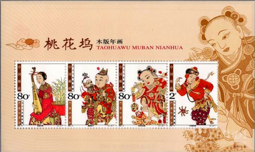 綻放中華民族文化遺產(chǎn)之美的年畫郵票。中國郵政從2003年開始,連續(xù)九年發(fā)行了各地木版年畫系列郵票九套共36枚,每套均為4枚,為新春佳節(jié)帶來吉祥喜慶氣氛。分別是:2003年發(fā)行的《楊柳青木版年畫》、2004年發(fā)行的《桃花塢木版年畫》、2005年發(fā)行的《楊家埠木版年畫》、2006年發(fā)行的《武強(qiáng)木版年畫》2007年發(fā)行的《綿竹木版年畫》、2008年發(fā)行的《朱仙鎮(zhèn)木版年畫》、2009年發(fā)行的《漳州木版年畫》、2010年發(fā)行的《梁平木版年畫》和2011年發(fā)行的《鳳翔木版年畫》。這些不同地域、不同風(fēng)格、不同色彩的年畫,展示了我國非物質(zhì)文化遺產(chǎn)的根深葉茂、博大精深。九套郵票,各有千秋,異彩紛呈,體現(xiàn)了不同地域鮮明的文化特色,方寸之間綻放出中華民族文化遺產(chǎn)的美麗。