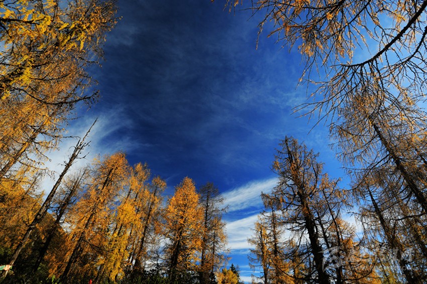 在這里,樹木、山峰、湖泊是如此的層次分明,一層一層的樹木有綠色、黃色、紅色,不同的色彩相互映襯,層林盡染,金碧輝煌,在連綿的群山之間頑強(qiáng)地生長著,吸允天地之精華,與山水為伴,與日月同輝。