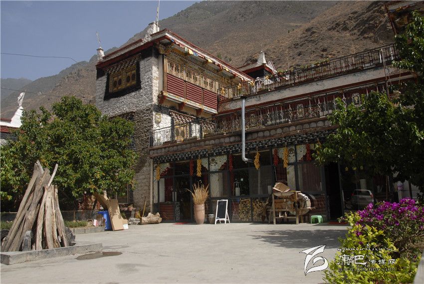 和瑞客棧的外觀很平常:一棟嘉絨風(fēng)格的民居連接著一片寬敞的院子。一扇鐵門打開,一片干凈整潔的院落,一下子跳到眼前。院子兩旁刻意設(shè)計(jì)了日式風(fēng)格的榻榻米,與中心水泥院壩區(qū)分開。