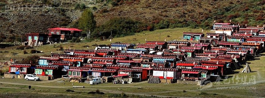 藏式房多平頂,可以說是環(huán)境的產(chǎn)物。高原干旱少雨,無須飛檐高頂,冬有積雪,便于打掃;最重要的是風沙大而頻繁,高屋難耐勁風。此外,平頂民房還有一個精神功能就是作為信仰的場所。房頂供奉有神靈的祭壇,有煨桑的香爐,更有家家必插的五色經(jīng)幡,有的房頂平臺的圖符裝飾極為精美,把最古老的建筑樣式和最現(xiàn)代的建筑格調(diào)融為一體。另一個共同特點便是,一般講究一些的農(nóng)村都把房子的夯土外壁刷成暗含深意的純白。這自然是典型的藏式院落了。而不太講究的半農(nóng)半牧區(qū)則保持原色。白色房屋上部突出棕色材料的房檐,或漆成棕紅的裝飾帶,既勾勒出輪廓,又平添了幾多美觀。白色建筑在藏語中有個非常詩意的名字,叫“點點繁星”。