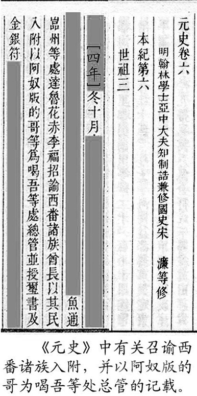 今屬康定縣的木雅,又分為上木雅和下木雅。下木雅的色烏絨地方,是木雅王曾住過的地方之一。民間又稱住在這里的王為“西吳甲布”(即“西吳王”),進而又附會出個“西吳國”來。從木雅貢嘎西邊那條叫色烏絨的山溝往南到打箭爐,正如傳說的那樣,早年一般要走三天。《元史》有“喝吾”的記載,“喝吾”“色烏”都是藏語的音譯,藏語“絨”為山溝之意,指的就是這個色烏絨。元世祖忽必烈征滇,沿大渡河、金沙江而進,得到沿途部落首領(lǐng)的大力支持。長河(大渡河)西的“西吳王”自然也不例外。所以在至元四年(公元1267年)“冬十月壬戌,魚通巖州等到處達魯花赤李福,招諭西番諸族酋長以其民入附,以阿奴版的哥等為喝吾等處總管,并授璽書及金銀符?!钡玫缴w有皇帝大?。ㄓ癍t)文書和金銀符,朝廷正式任命為“喝吾”總管的酋長(木雅王)阿奴版的哥,之后從色烏絨遷到打煎爐,不僅成為朝廷認(rèn)可的“長河西土官”,還作了“四川分省右丞”。我們是否可以判定,“木雅王”遷爐的時間應(yīng)在至元四年(公元1267年)之后?1267年距今740多年,以此推算,如前文所說:今天西爐(康定城)的歷史,大約為700年!再者,若從宋代的“卡拉國”算起,說“明正”歷四十二代,不能說沒有一點來頭。