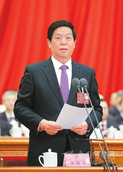 習(xí)近平張德江俞正聲張高麗汪洋王滬寧趙樂際韓正等在主席臺就座 李克強(qiáng)作政府工作報告 栗戰(zhàn)書主持大會 聽取關(guān)于憲法修正案草案的說明