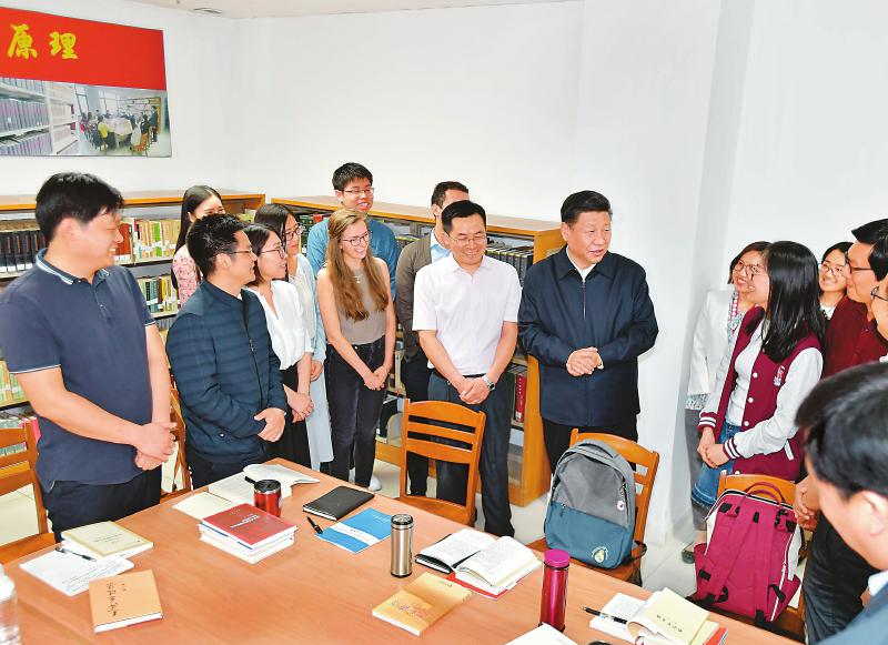 5月2日,中共中央總書(shū)記、國(guó)家主席、中央軍委主席習(xí)近平來(lái)到北京大學(xué)考察。這是習(xí)近平在北京大學(xué)馬克思主義學(xué)院,與正在就“解讀新時(shí)代”進(jìn)行座談交流的中外學(xué)生親切交談。 新華社記者 李濤 攝