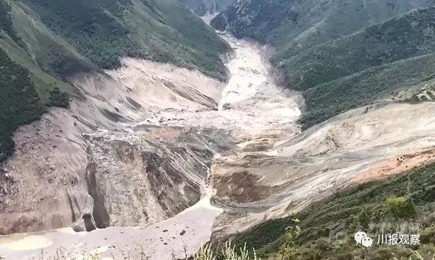 另據(jù)四川省防指和四川省水利廳工作組反饋:堰塞湖所在江段長約10.6公里,河谷為“V”形峽谷,兩側(cè)岸坡坡度20~60°,河谷結(jié)構(gòu)為斜向谷。河道上游彎曲、下游稍順直,水流急,局部稍緩。初步統(tǒng)計,該段江段共有滑坡10處,崩塌3處,泥石流溝8條。其中有2處大型滑坡,即則學(xué)滑坡和仁達(dá)滑坡。
