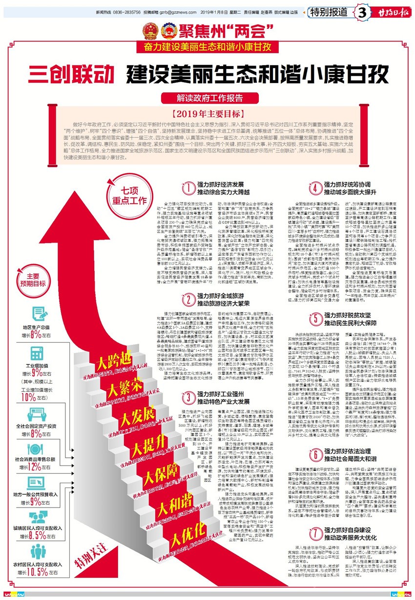 按照高質(zhì)量發(fā)展要求,扎實推進穩(wěn)增長、促改革、調(diào)結(jié)構(gòu)、惠民生、防風(fēng)險、保穩(wěn)定,緊扣州委“圍繞一個目標(biāo)、突出兩個關(guān)鍵、抓好三件大事、補齊四大短板、夯實五大基礎(chǔ)、實施六大戰(zhàn)略”總體工作格局,全力推進國家全域旅游示范區(qū)、國家生態(tài)文明建設(shè)示范區(qū)和全國民族團結(jié)進步示范州“三創(chuàng)聯(lián)動”,深入實施鄉(xiāng)村振興戰(zhàn)略,加快建設(shè)美麗生態(tài)和諧小康甘孜……