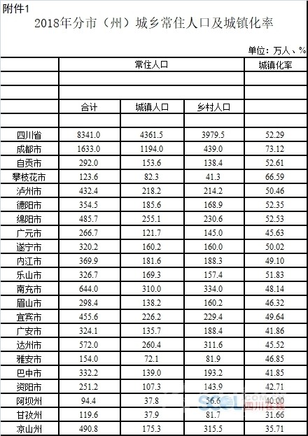 3月19日上午,四川省人民政府新聞辦公室召開新聞發(fā)布會,發(fā)布2018年四川省人口統(tǒng)計公報。四川新聞網(wǎng)記者從會上獲悉,四川省公安廳提供的數(shù)據(jù)顯示,2018年末全省戶籍人口9121.8萬人,其中城鎮(zhèn)人口3271.5萬人,鄉(xiāng)村人口5850.3萬人,戶籍人口城鎮(zhèn)化率35.87%。