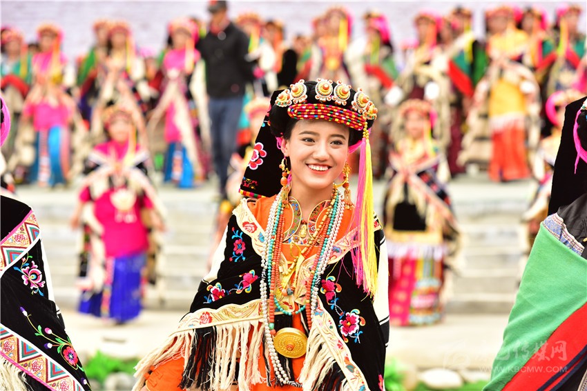 本網(wǎng)訊 5月19日,備受矚目的墨爾多山下的實(shí)景劇《美人谷》在丹巴縣中路鄉(xiāng)成功首演。十三戰(zhàn)神、女子成人禮、頂毪衫、爬墻舞,430名演員齊登臺,圍繞“小嘉嫫”的出生、成長、愛情、結(jié)婚,再現(xiàn)了嘉絨藏族的神話傳說、文學(xué)、禮儀、歌舞及生活習(xí)俗,引得觀眾紛紛錄影留念。
