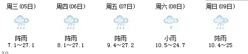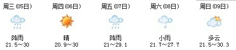 5日開(kāi)始一直到9日都是多云到晴的天氣,日最高氣溫27℃左右。每天都有陣雨(小雨),考生出行應(yīng)防山地災(zāi)害。