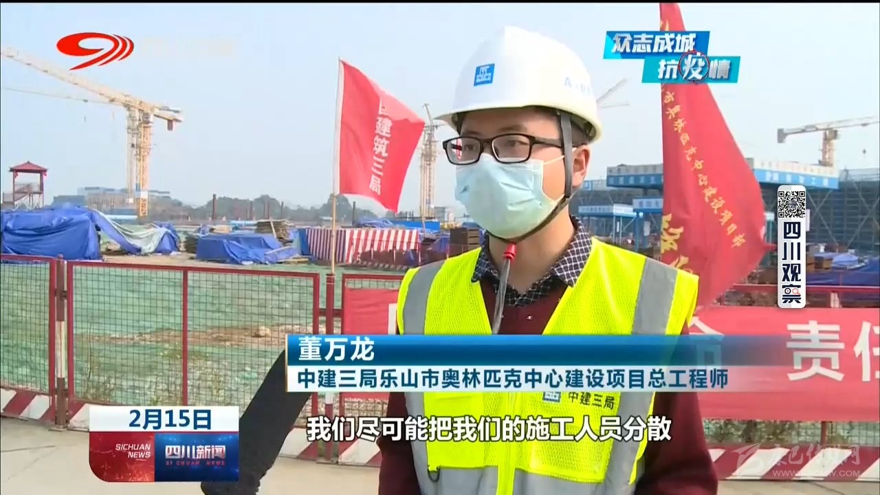 中建三局樂山市奧林匹克中心建設(shè)項(xiàng)目總工程師 董萬龍:“我們盡可能把我們的施工人員分散,不要聚集,對內(nèi)我們做好防控物資的保障,口罩、消毒水以及酒精這些防疫物資已經(jīng)齊全?!?/p>