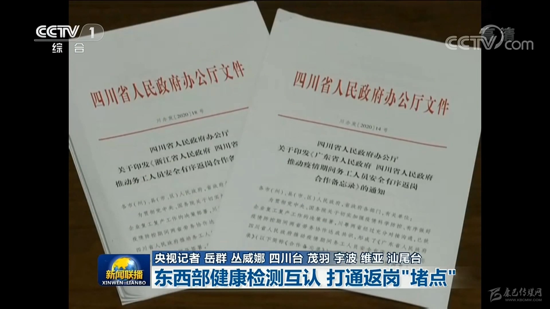 為了讓外出務工人員順利走出家門返崗,四川務實推出“健康碼”,又主動和7省市簽署《合作備忘錄》,成為第一個和其他省建立起健康檢測互認工作機制的省份。今天的《新聞聯(lián)播》單條關注了這一全國創(chuàng)新之舉,央視聯(lián)手四川廣播電視臺探尋機制背后的邏輯。來看川臺記者的一線調研采訪。