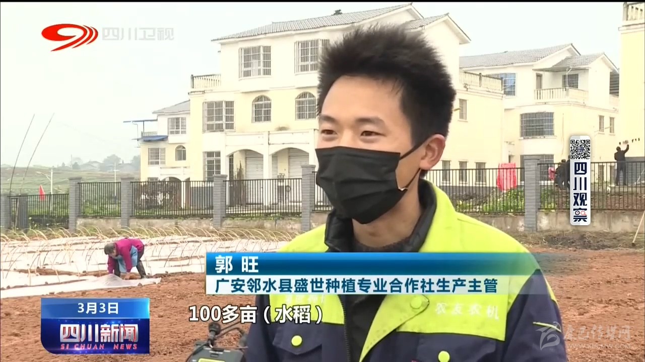 廣安市鄰水縣盛世種植專業(yè)合作社生產(chǎn)主管 郭旺: 我們今年預(yù)計(播種)100多畝水稻,現(xiàn)在已完成30%左右,剩余的估計在3月10號左右完成。
