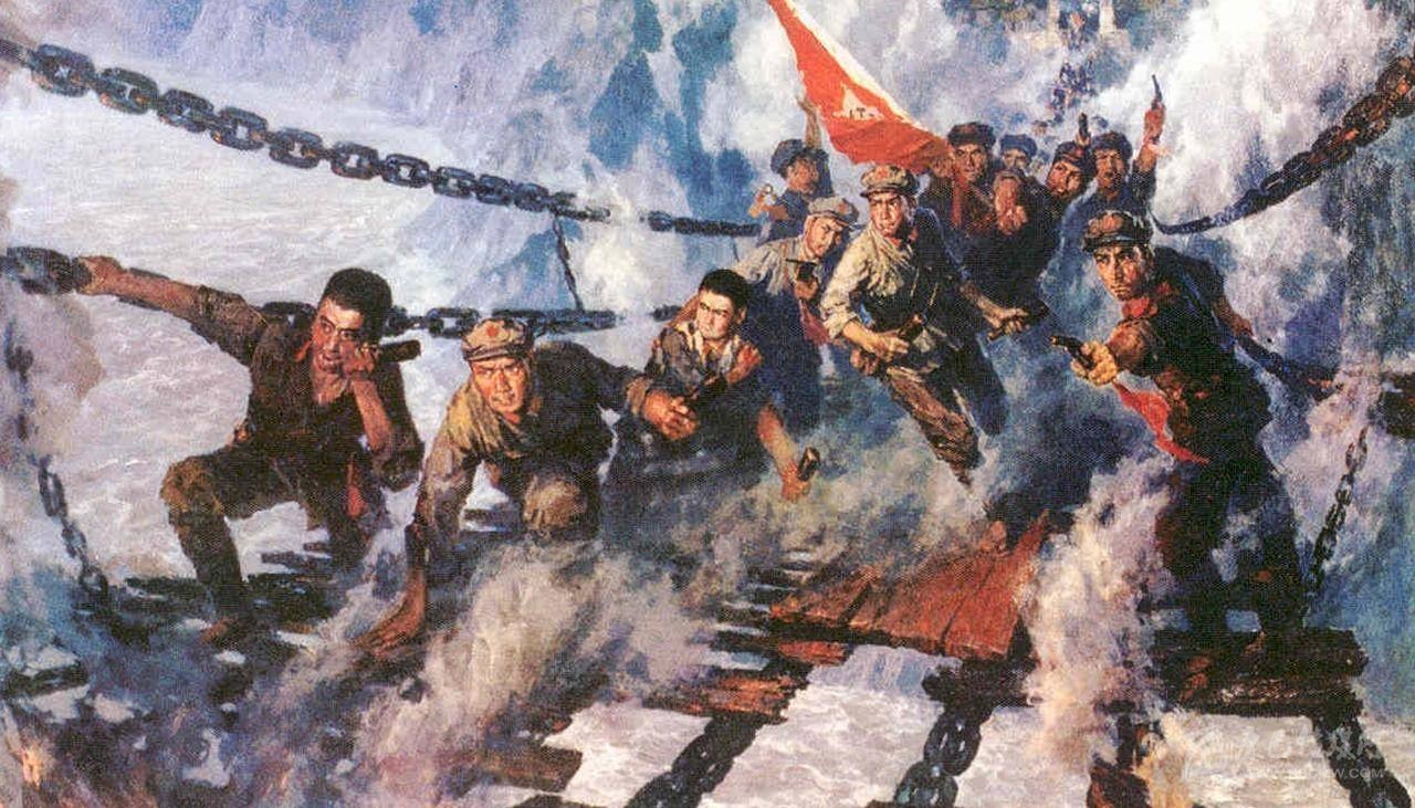 “金沙水拍云崖暖,大渡橋橫鐵索寒?!?5年前,在前有大渡河天險(xiǎn)、后有國(guó)民黨追兵的危急時(shí)刻,22位勇士臨危受命組成突擊隊(duì),冒著迎面射來(lái)的彈雨,以強(qiáng)攻手段飛奪瀘定橋,打通了紅軍北上的道路。