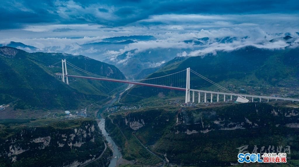 4月11日,雨后的瀘州市古藺縣的赤水河紅軍大橋在云霧中,大橋橫跨赤水河兩岸,連接川黔兩地,在連綿的烏蒙山中更加壯觀。赤水河大橋主橋跨徑1200米,為雙塔單跨鋼桁梁懸索橋,索塔采用門形框架鋼筋混凝土結(jié)構(gòu),貴州岸塔高243.5米,是世界山區(qū)峽谷同類型橋梁中第一高塔,同時(shí)也是國內(nèi)山區(qū)峽谷同類型橋梁第二跨度的鋼桁梁懸索橋。作為四川南向出川大通道,增強(qiáng)了川南、黔北、渝西等地的經(jīng)濟(jì)聯(lián)系。