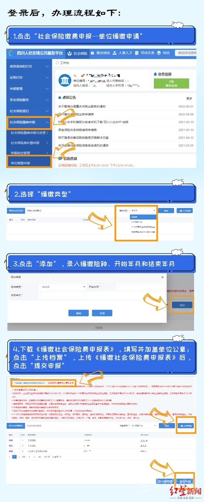 7月26日,紅星新聞記者從成都市人社局獲悉,今年6月,四川省人社廳、省發(fā)改委、省財政廳、省稅務(wù)局聯(lián)合出臺的《關(guān)于擴大階段性緩繳社會保險費政策實施范圍等問題的通知》,明確了延長階段性減免企業(yè)基本養(yǎng)老保險、失業(yè)保險、工傷保險單位繳費政策實施期限,同時將階段性緩繳社會保險費政策擴圍至22個行業(yè)。