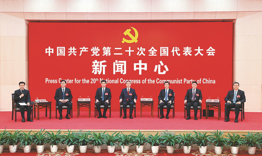 10月20日,中國(guó)共產(chǎn)黨第二十次全國(guó)代表大會(huì)新聞中心舉行集體采訪(fǎng)。 新華社 發(fā)