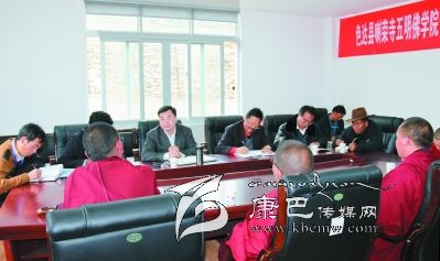 “我們這次來的目的就是想和大家交流,聽聽五明佛學(xué)院有什么困難,有什么需要黨委、政府支持的。”一走進(jìn)寺院,胡昌升便道出了此行目的。他說,僧尼是基本群眾、寺廟是基本社會(huì)單元。黨委、政府應(yīng)該關(guān)心所有的僧尼和寺廟,但寺廟也要履行好自己的責(zé)任和義務(wù),真正把五明佛學(xué)院管得有序,讓這里的僧眾在文明和諧的氛圍中提高自己的佛學(xué)水平。