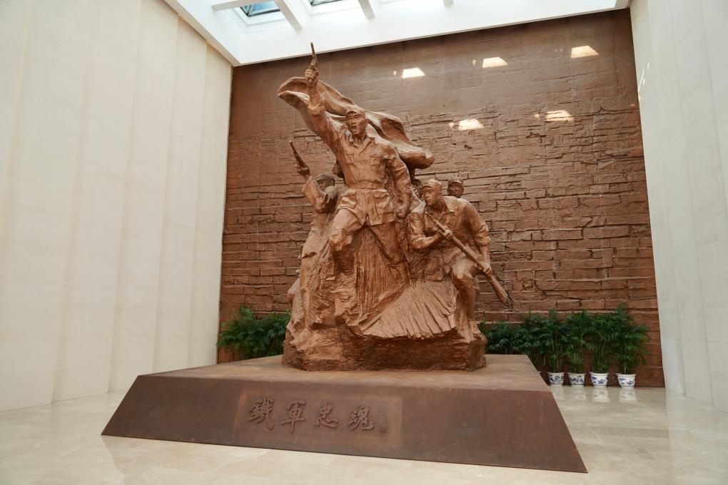這是近日拍攝的新四軍紀念館內的鐵軍忠魂雕塑。新華社記者 李博 攝