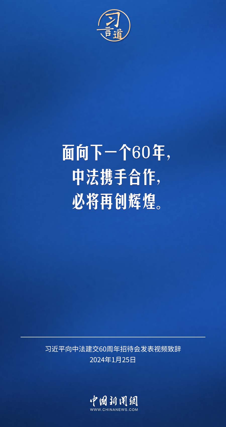 1月25日,中法建交60周年招待會在國家大劇院舉行,國家主席習(xí)近平發(fā)表視頻致辭。習(xí)近平指出——