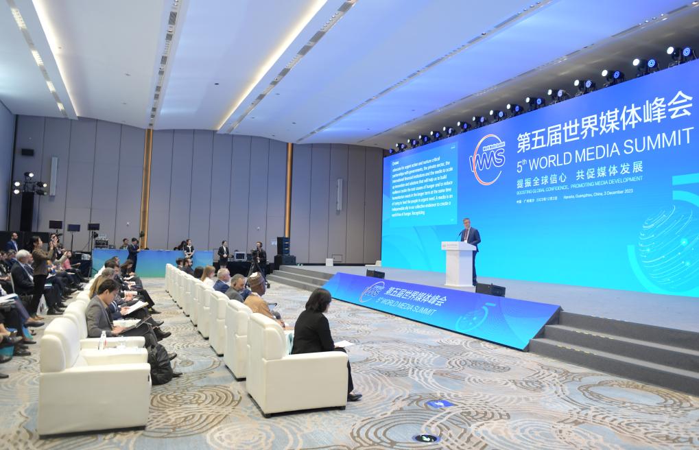 ??2023年12月4日,以“提振全球信心 共促媒體發(fā)展”為主題的第五屆世界媒體峰會(huì)在廣州南沙舉行平行分論壇活動(dòng),嘉賓在分論壇上發(fā)言。新華社記者 盧漢欣 攝