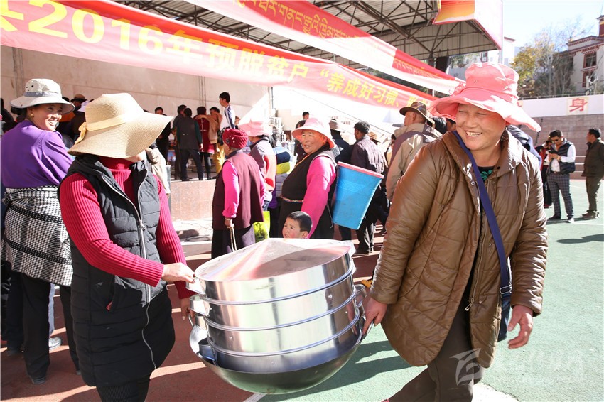 巴塘村民領取蒸籠。