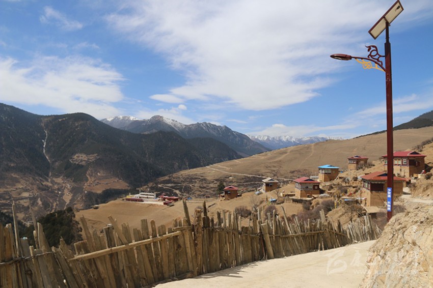 從白玉縣城向西北方向行駛28公里是該縣章都鄉(xiāng)。從章都鄉(xiāng)鄉(xiāng)政府出發(fā),汽車在杜鵑掩映的通村公路上蛇形30分鐘、折轉(zhuǎn)12道彎、向上爬升600多米便到了翁休村。走進(jìn)該村,一幅由寬敞明亮的村民活動室、蜿蜒曲折的連戶路、嶄新的太陽能路燈、潔白的獨(dú)立浴室與遠(yuǎn)處的雪峰、白云、松林、草場交相輝映而成的精美畫卷映入眼簾。這幅畫卷中的元素都印證了記者已經(jīng)知道的情況——這是一個去年“摘帽”的貧困村。