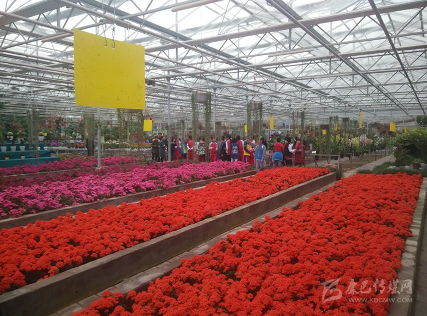 考察團(tuán)坐上觀光電瓶車,穿行在產(chǎn)業(yè)園內(nèi)3000余畝的百合及各種花卉中間,香氣宜人,流連忘返;走進(jìn)單棟面積達(dá)10000平米的14個連棟智能溫室花卉大棚,妖艷的水仙,高挑的百合,艷麗的百合,白色的、黃色的、紅色的、粉色的,讓人眼花繚亂,置身于花海中的你,一年四季都有花看、有花賞。