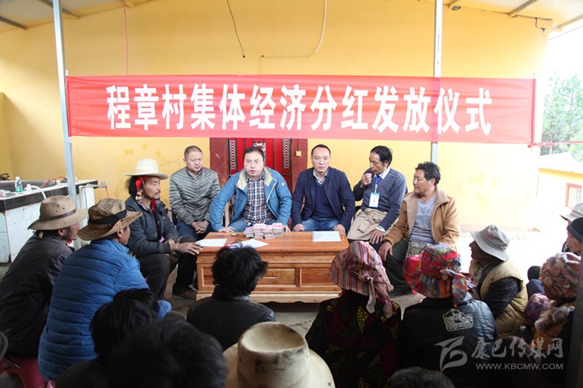 4月27日下午,雅江縣米龍鄉(xiāng)程章村熱鬧非凡、喜氣洋洋。 剛吃過午飯,村民們就齊刷刷地聚集到了村民活動室,等待村集體經(jīng)濟首次分紅。