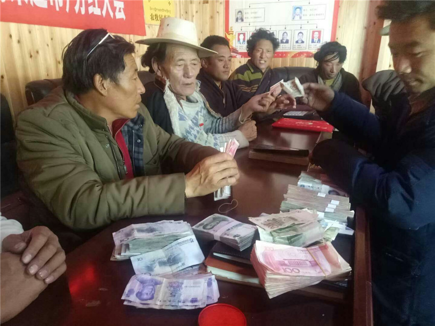 本網訊(縣委中心報道組 葉強平 文/圖)4月10日,領到1498元分紅的理塘縣曲登鄉(xiāng)渾查一村牧民扎西格勒把錢數了三遍,不是擔心錢沒給夠,而是沒想到自己以前不看好的超市真的分紅了。