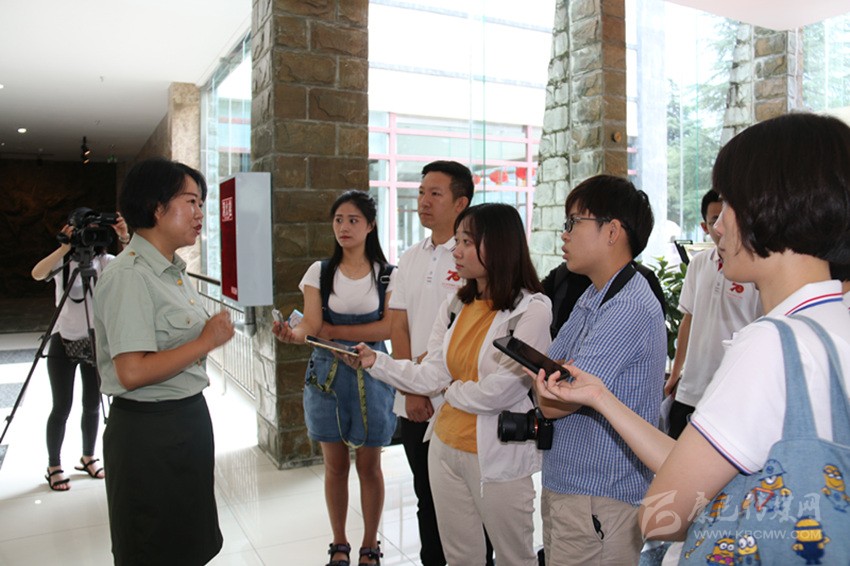 記者采訪瀘定紅軍飛奪瀘定橋紀(jì)念館解說員。