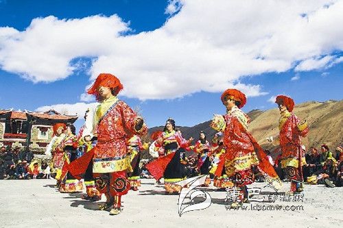 康定縣呷巴鄉(xiāng)上呷村的村民跳起歡樂(lè)的舞蹈,喜迎藏歷新年。