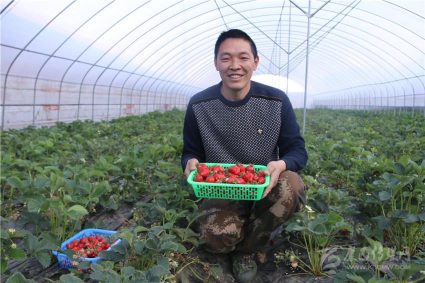 草莓喜獲豐收,肖云樂(lè)開(kāi)了懷。