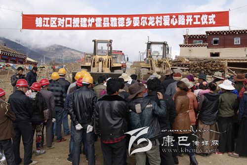 錦江區(qū)對(duì)口援建爐霍縣雅德鄉(xiāng)晏爾龍村愛(ài)心路開(kāi)工儀式現(xiàn)場(chǎng)。
