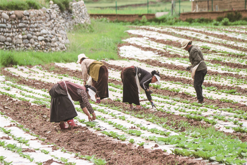 “在基地里務(wù)工都是按需要,村民以戶為單位實行排班制,每戶每天可安排一人務(wù)工,每天有100元的報酬,按照這樣的排序,一年下來大概每個人能有四五千元的收益,有的家庭成員多、務(wù)工次數(shù)較頻繁的,一年下來收入近萬元?!笔∷痉◤d派駐贈科鄉(xiāng)依里村的第一書記陳鈺告訴記者,自基地建立后,給群眾的生活帶來了很大變化,除了讓群眾有可觀的經(jīng)濟收入以外,基地內(nèi)特邀的外地專業(yè)種植技術(shù)人員日常也會教授許多農(nóng)業(yè)種植技術(shù),讓大家受益匪淺。